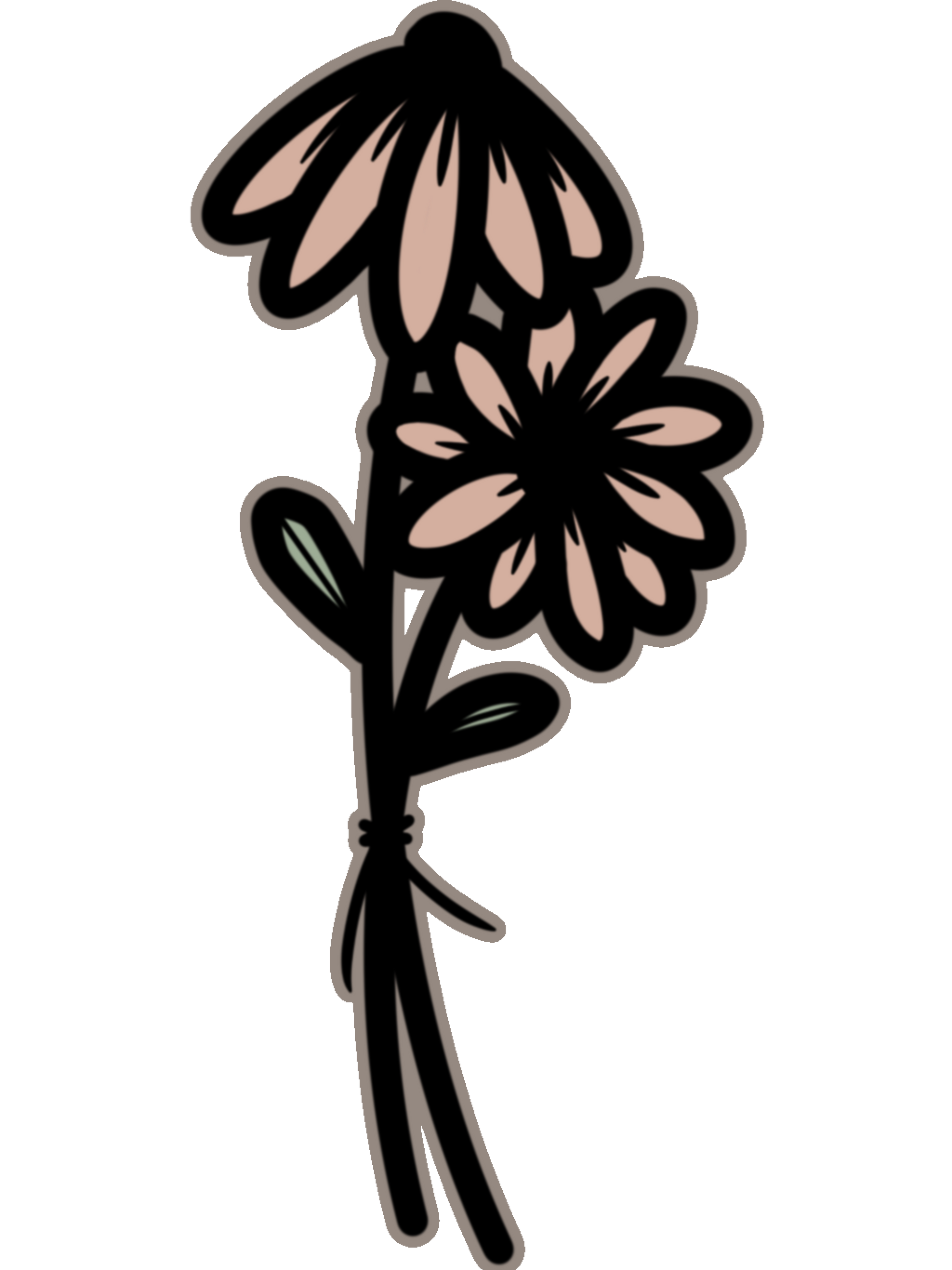 Floral die-cut sticker printed on premium clear matte vinyl. Good for bottles, cars, notebooks and more! Featuring two taupe daisies bound together with a string, this sticker design is minimal and feminine, without being overly so thanks to the thick line work. (1.46"x3")